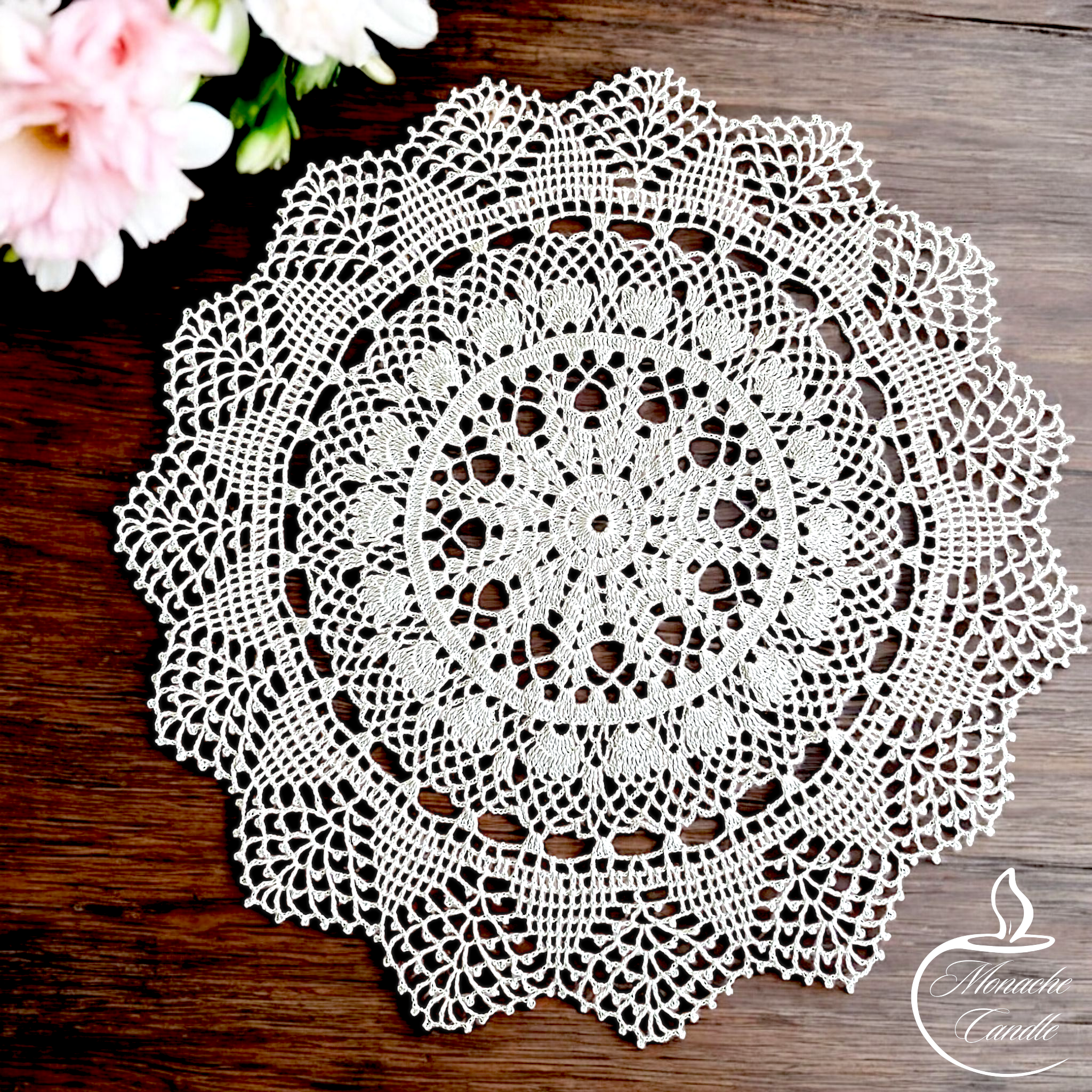 Ta serweta idealnie sprawdzi się jako dekoracyjny akcent w stylu vintage, rustykalnym czy boho, a także jako wyjątkowy dodatek do prezentu – np. do świec sojowych z mojej kolekcji.
