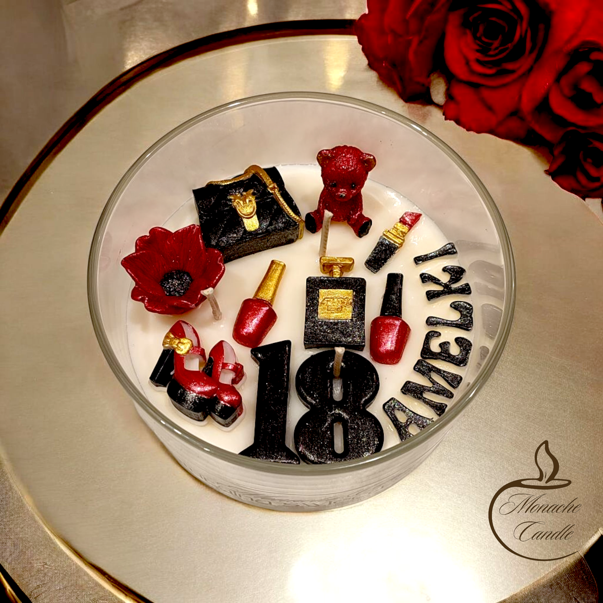 Ręcznie wykonana świeca sojowa w szkle stworzona z myślą o urodzinach – jako wyjątkowy prezent lub dekoracja na ten szczególny dzień.